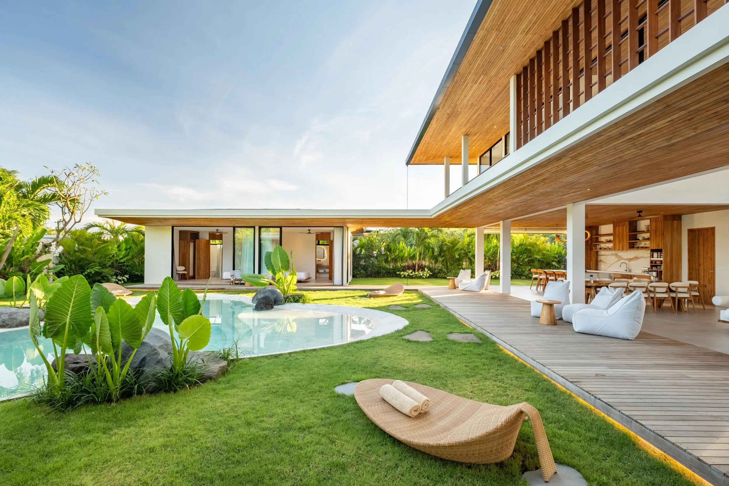 Arranged around a peaceful courtyard and private pool, the villa creates a seamless balance between shared spaces and private retreats. The sophisticated living and dining area serves as the heart of the home, providing an elegant environment for gatherings, while the surrounding bedrooms and entertainment room ensure everyone has their own space for relaxation and enjoyment.